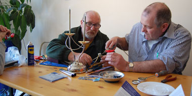 rc lampe kleinReparier Cafés sind Treffen von Menschen, die gemeinsam mit anderen ihre defekten Alltagsgegenstände wie z.B.  Küchengeräte, Uhren, Computer, Telefone oder andere Elektrogeräte reparieren. Besucher bringen defekte Gegenstände von zu Hause mit und bearbeiten sie gemeinsam mit einem Fachmann oder einer Fachfrau.